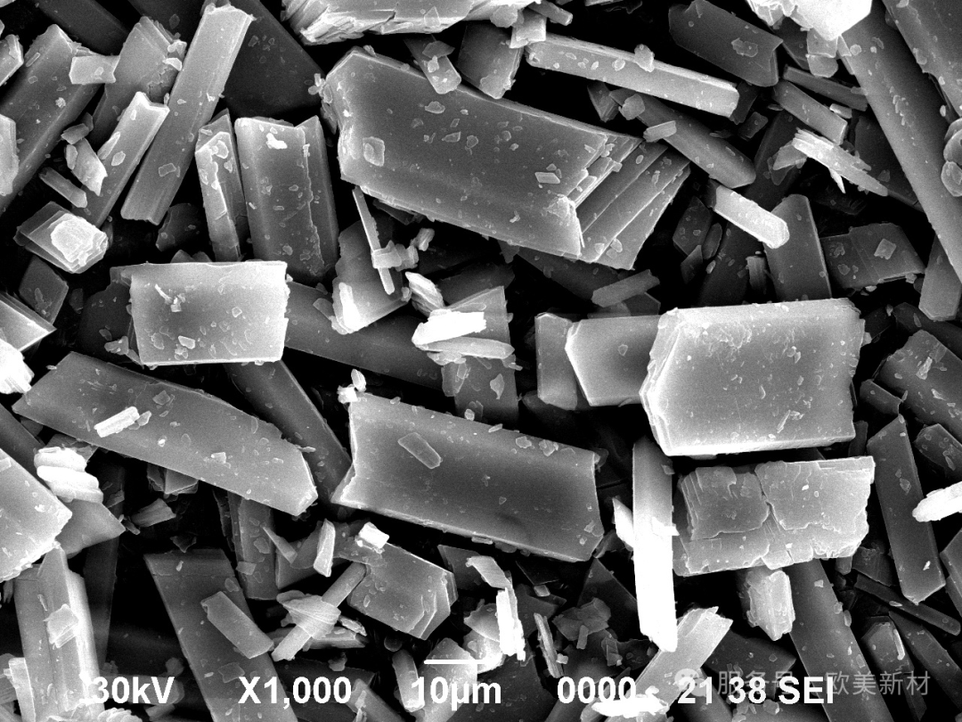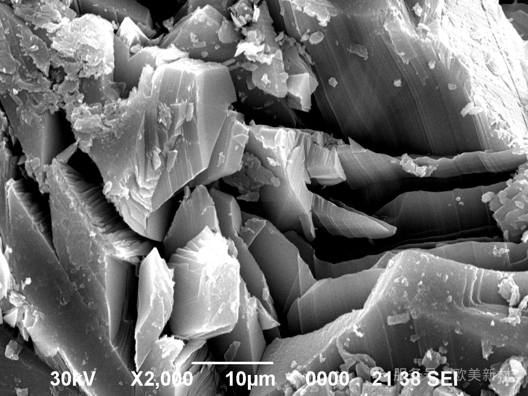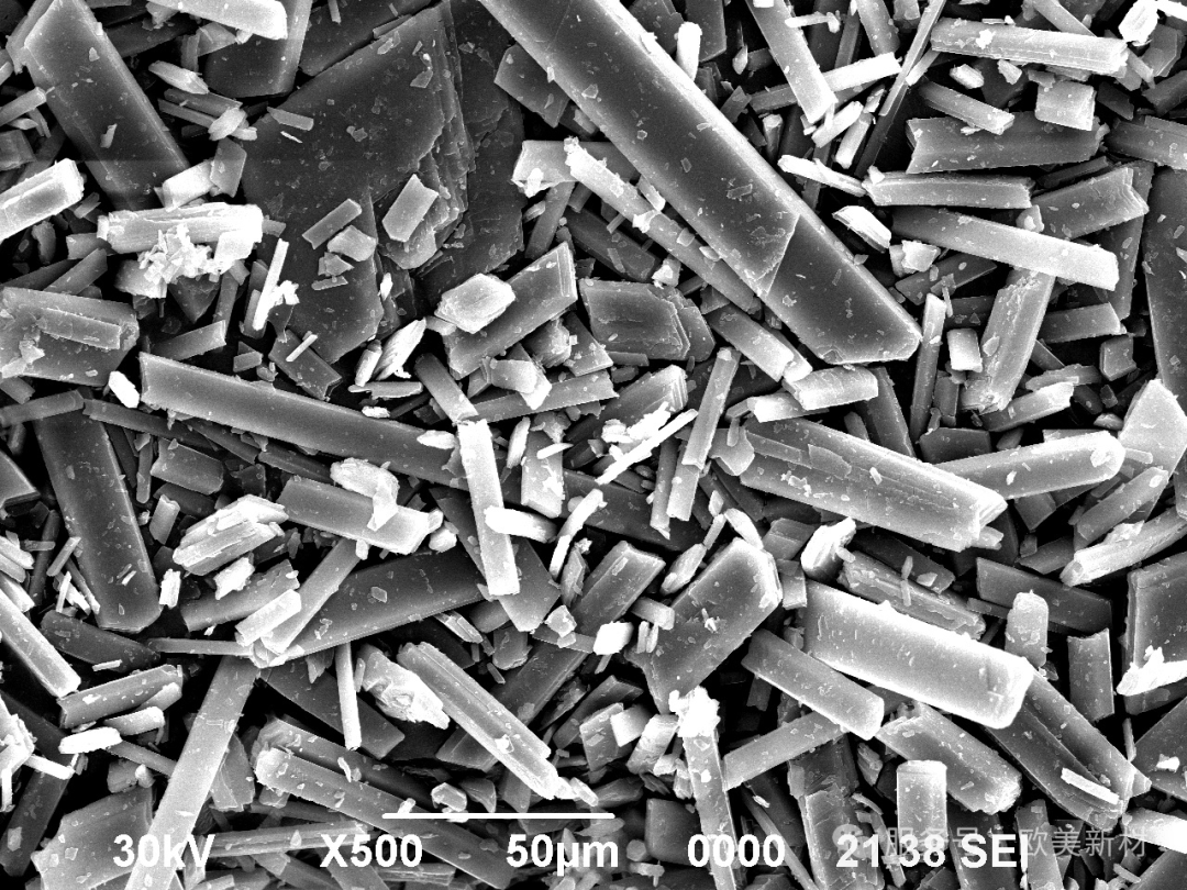 为了进一步考察共聚物对硫酸钙垢的阻垢作用机理,我们对阻硫酸钙垢的试验中收集的沉淀物进行扫描电子显微镜分析,如下图4所示。